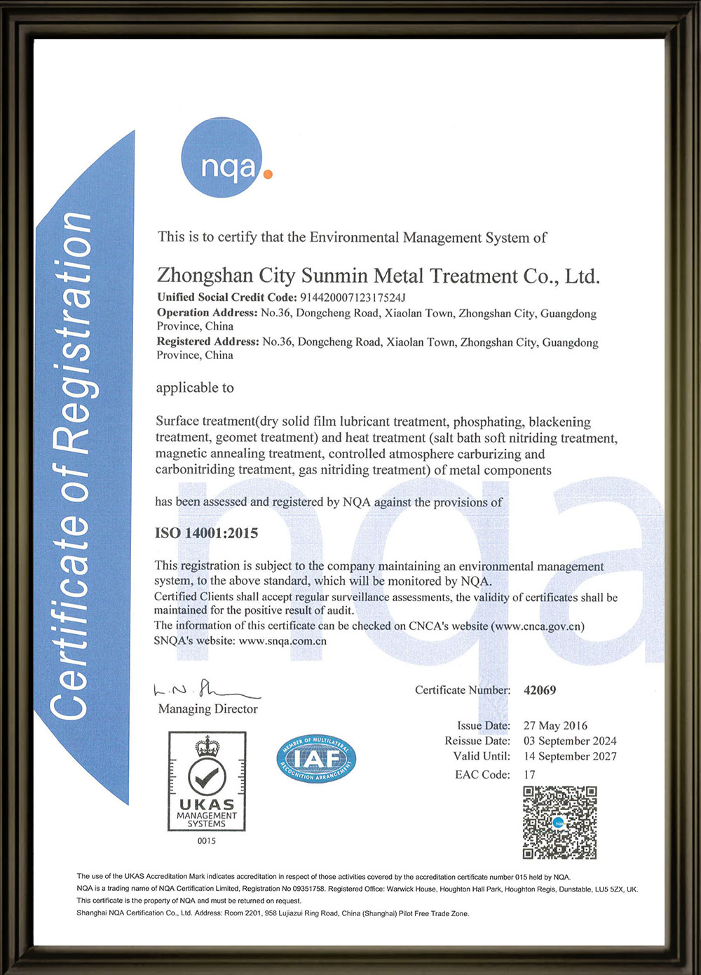 ISO 14001:2015認證